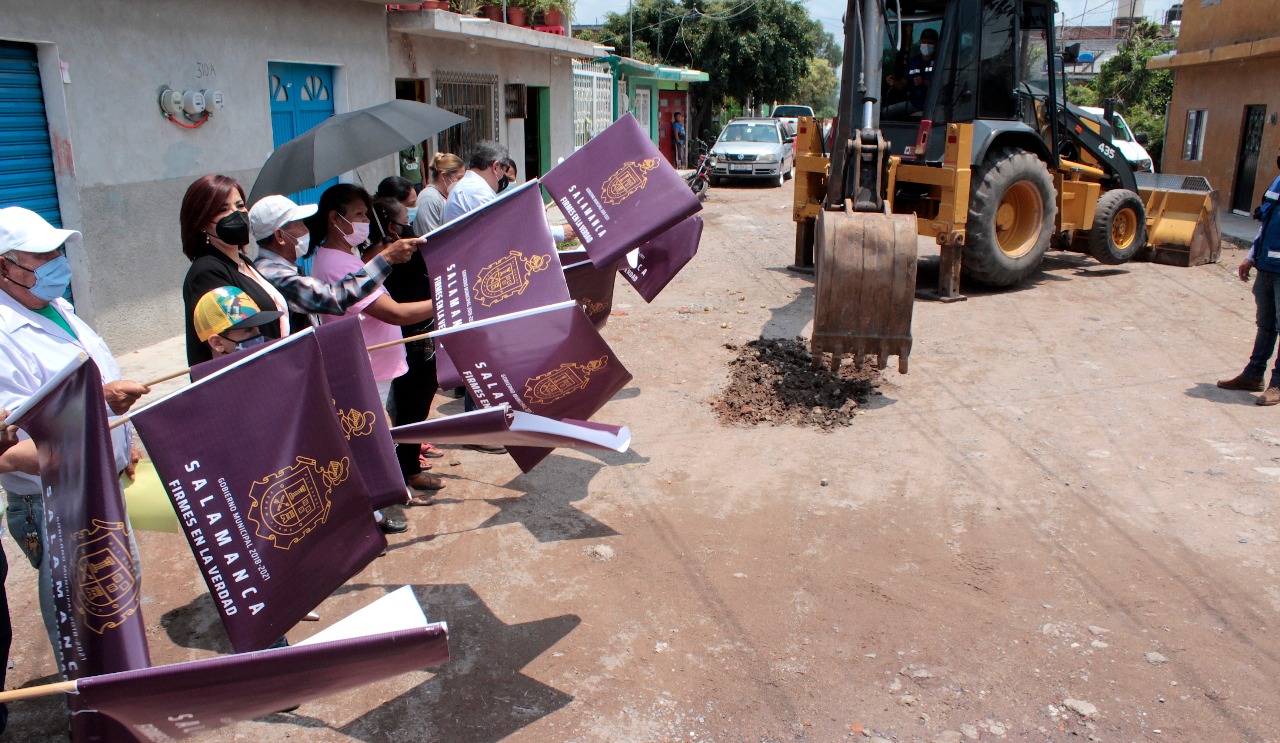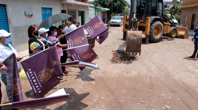 Salamanca, Gto. Después de años de espera, vecinos de la calle Manuel Doblado de la comunidad de Valtierrilla podrán disfrutar de una calle pavimentada, gracias al trabajo bien hecho que realiza el Gobierno de Betty Hernández.