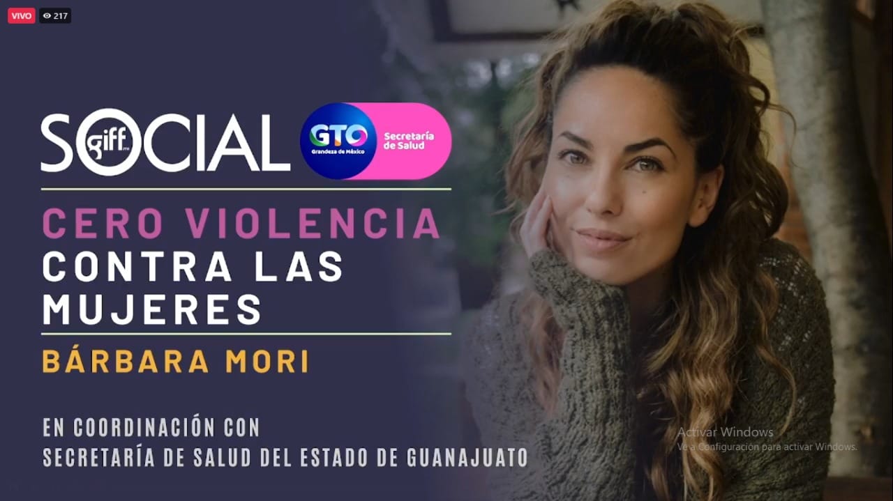 Guanajuato, Gto. 6 septiembre 2021. La Secretaría de Salud de Guanajuato (SSG) se suma este 2021 al Guanajuato International Film Festival (GIFF) con dos campañas importantes, la primera de ellas “Cero Violencia contras las Mujeres” y su portavoz la actriz Bárbara Mori y una campaña Contra al Suicidio” #YoMeComprometo y su portavoz el actor Luis Roberto Guzmán.