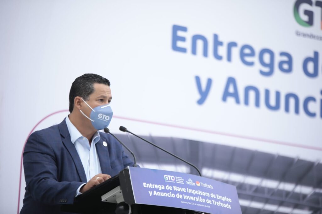 En la ceremonia de entrega de la Nave Impulsora de Empleo de Tarimoro a TreFoods que tuvo una inversión superior a los 31.3 millones de pesos, el Mandatario Estatal, destacó que Guanajuato avanza en su reactivación económica.