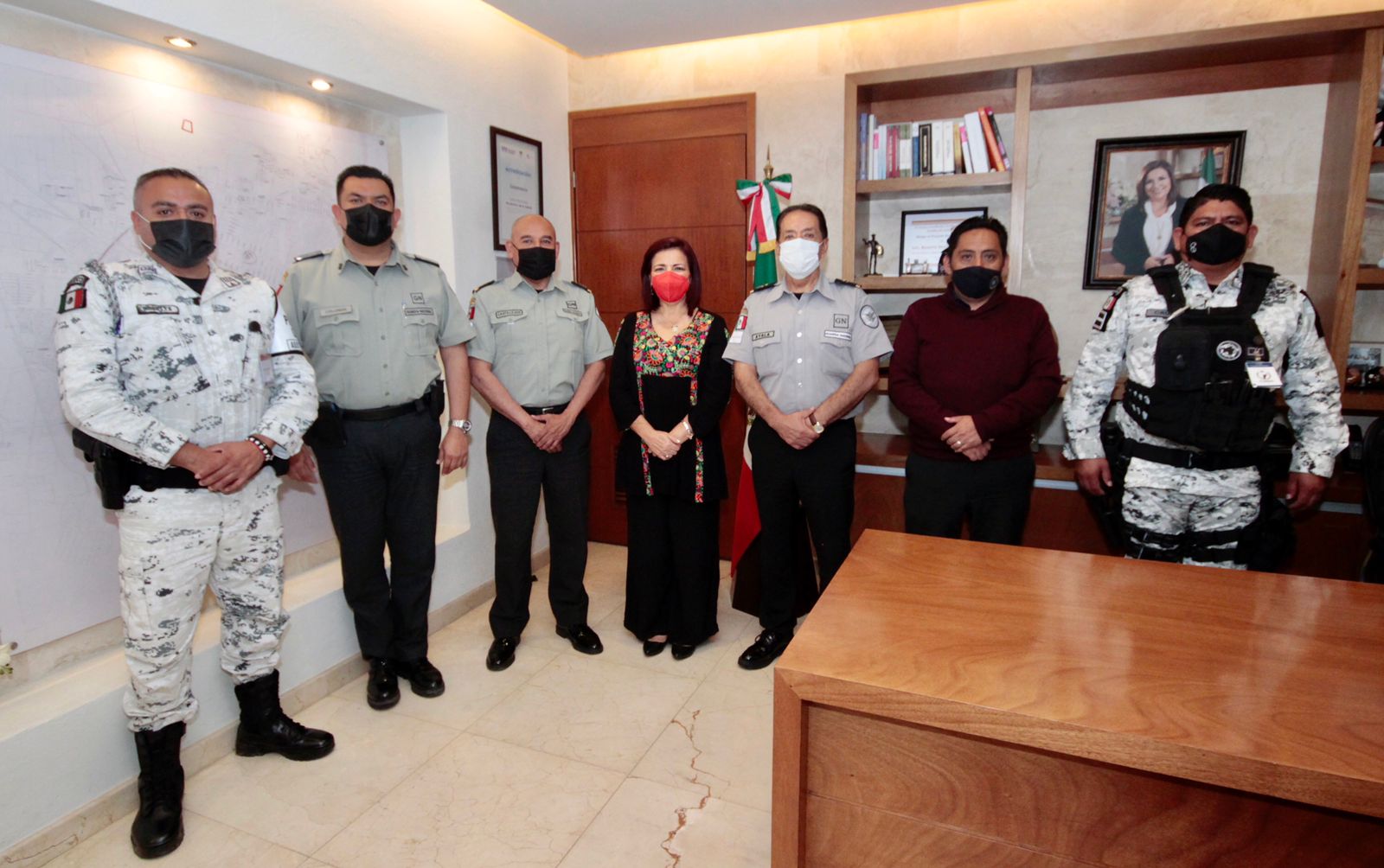 Salamanca, Gto. En seguimiento a las estrategias de seguridad y protección ciudadana, la alcaldesa Betty Hernández, sostuvo una reunión de trabajo con la comitiva de la 16ª compañía de campo de Guardia Nacional, en la que se realizó un análisis de los resultados del destacamento asignado a Salamanca, así como su participación en las acciones a seguir en los diferentes operativos y coordinación con la dirección general de Seguridad Pública.