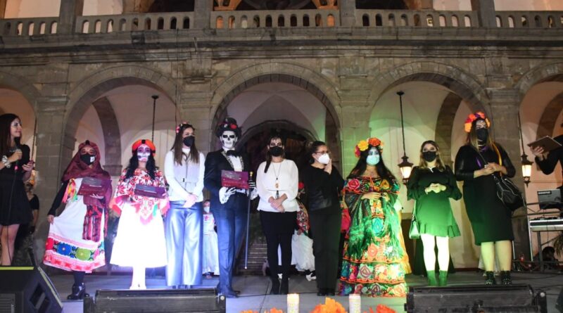 Irapuato, Gto. 1 noviembre 2021. Con el encendido del Altar de Muertos en el Ágora del Hospitalito, dieron inicio las actividades del V Festival ‘Reviviendo Las Tradiciones’, que concluirá el 5 de noviembre en el Centro Histórico.