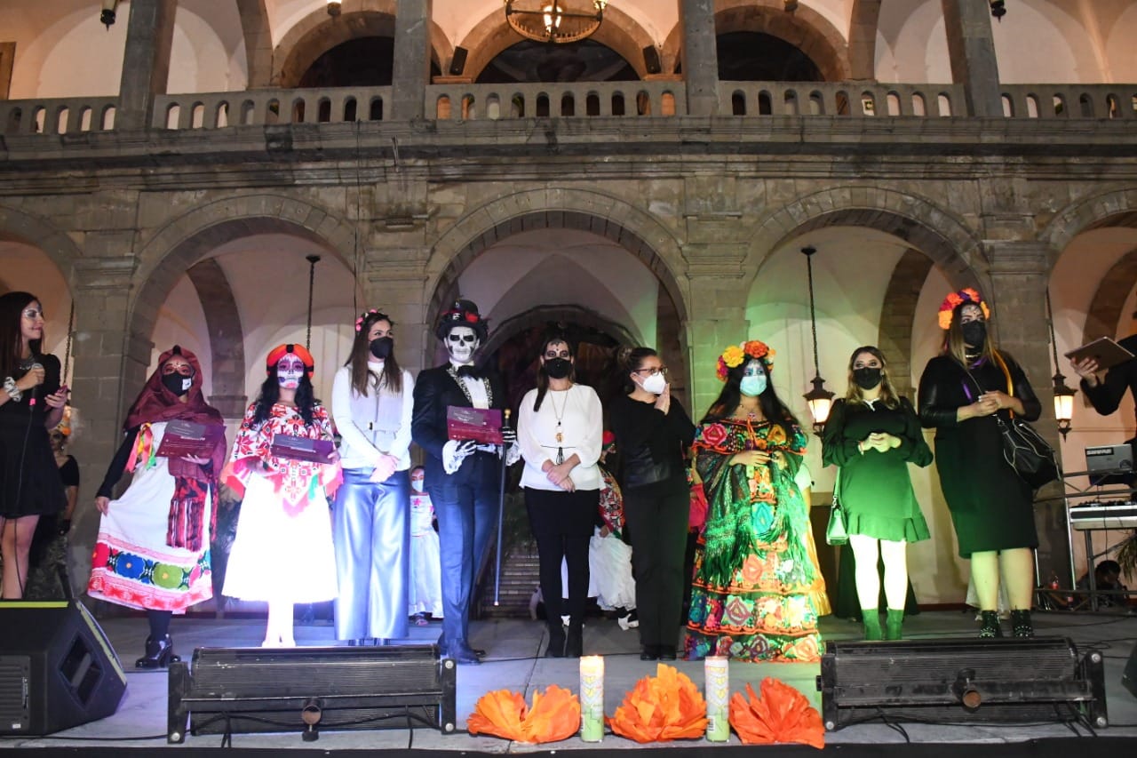 La presidenta municipal, Lorena Alfaro García, junto a las y los asistentes a la inauguración, recorrieron los diferentes puntos del Centro de la Ciudad, en los que observaron los Madonnari, altares de muertos y la alfombra roja del concurso de catrinas y catrines.