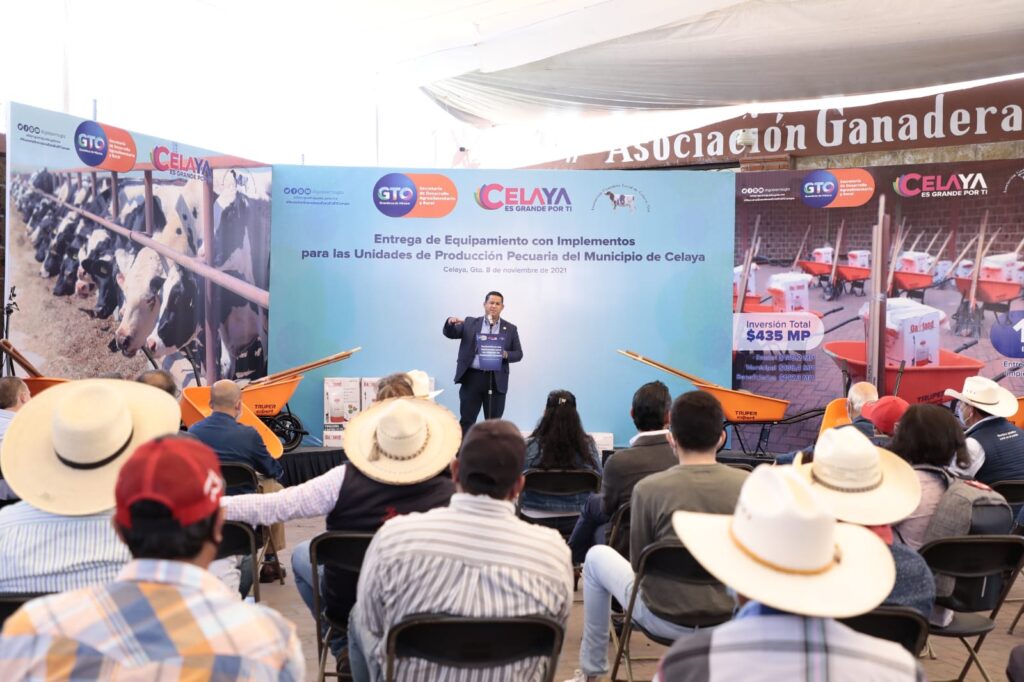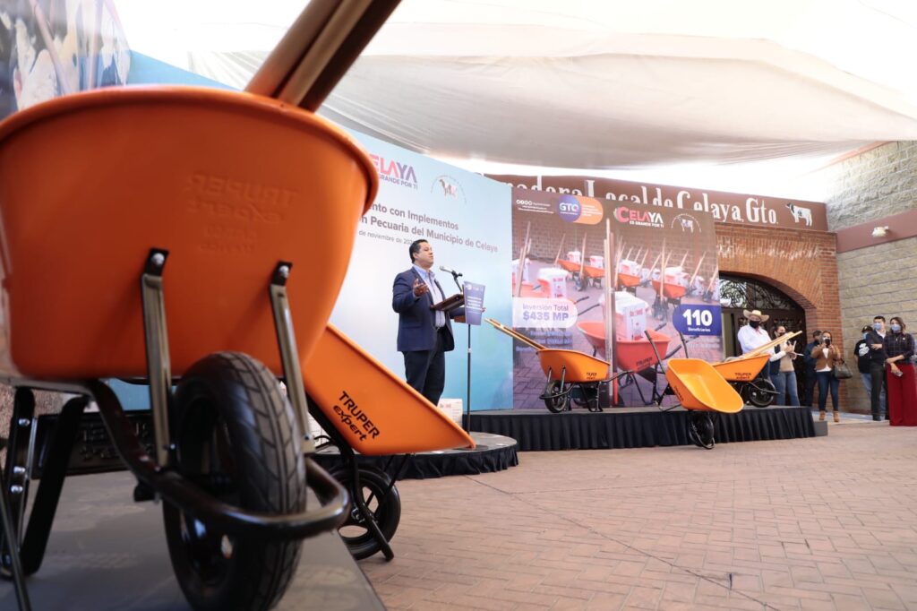 Con este programa de la SDAyR, se entregaron paquetes de equipo a ganaderos de la Asociación de Celaya, que incluye: una carretilla metálica, bieldo para paja, escoba metálica, pala carbonera, pala redonda (de pico), botas sanitarias y un fumigador eléctrico de 22 litros.