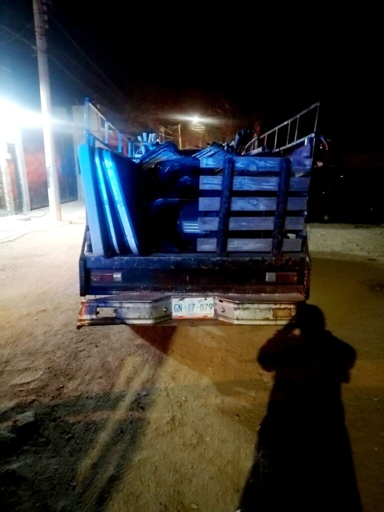 Después de recorridos de vigilancia por la zona, se detectó el vehículo de la marca Chevrolet Tahoe, modelo 2003, color azul, sin placas de circulación, con número de serie 1GNEC13V93J155484, en la calle Niños Héroes de la colonia Santa Julia, con reporte de robo del día 09 de noviembre del 2017.