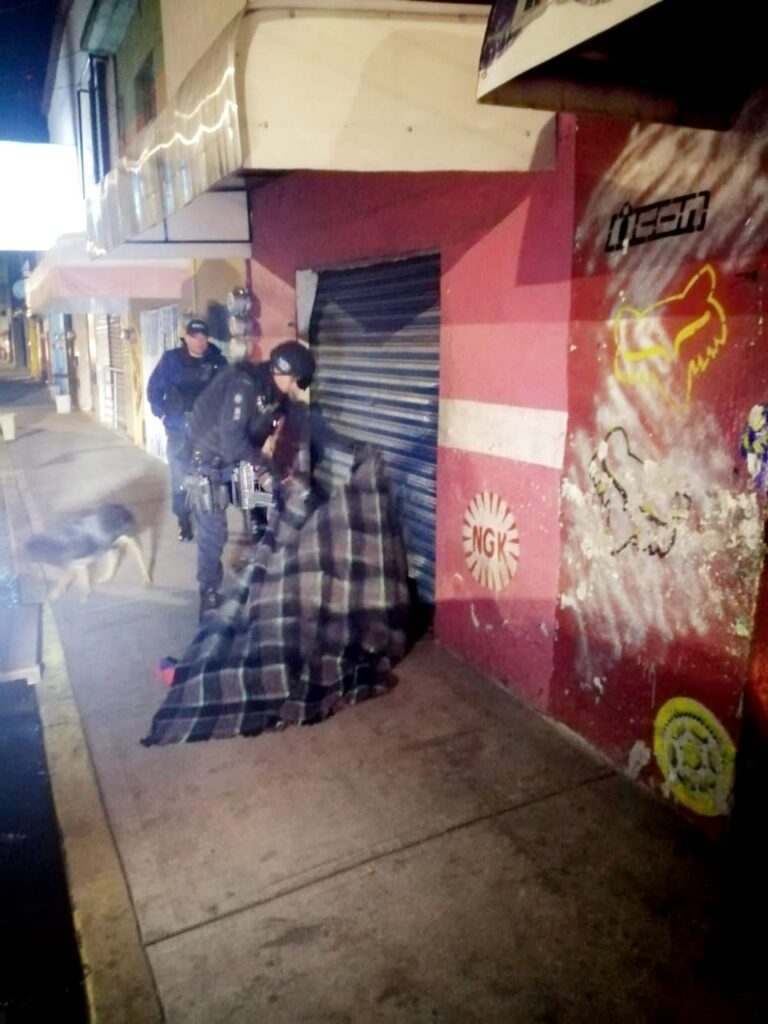 Irapuato, Gto. 26 diciembre 2021. Personal de Protección Civil continúan implementando el Operativo Invernal en calles de la ciudad, con el propósito de detectar a personas que se encuentren en situación de calle e invitarlos a que pernocten en los dos albergues que habilitaron para esta temporada de invierno.