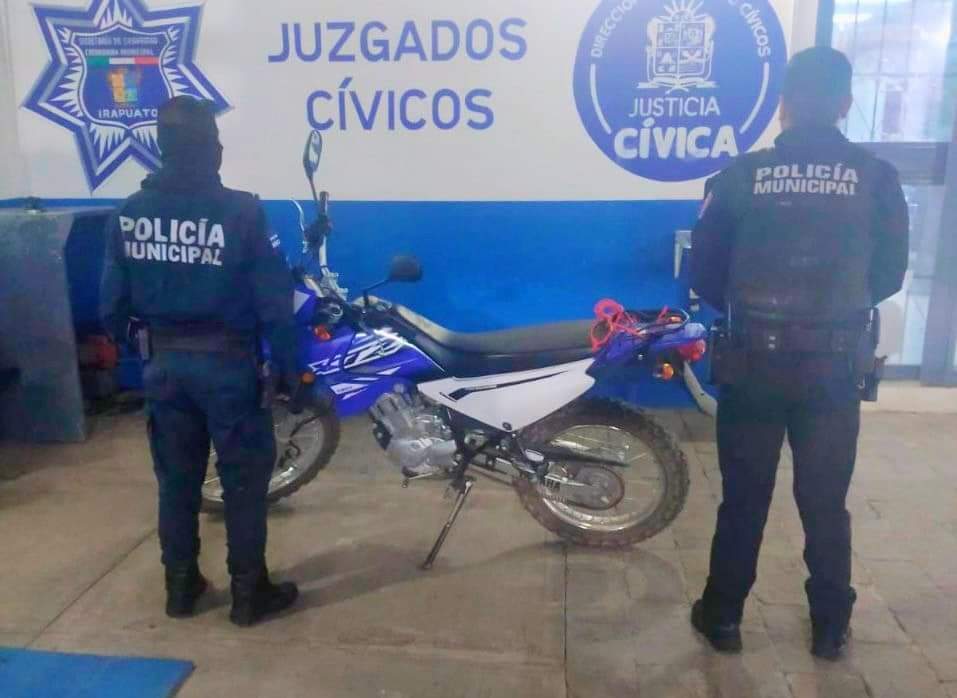 Más tarde, a las 23:00 horas, de la esquina conformada por la calle José María Covarrubias y el bulevar del fraccionamiento Los Eucaliptos; sobre la vía pública, los elementos recuperaron una motocicleta marca Yamaha, color azul con blanco, con reporte de robo.