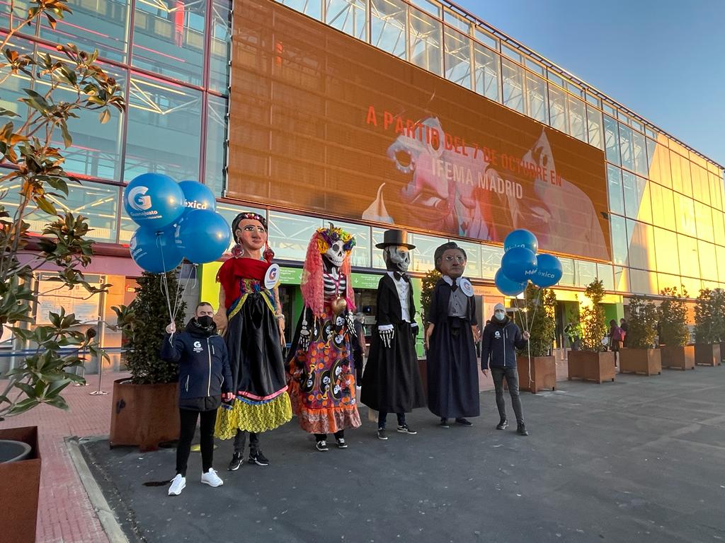 Madrid, España. 19 enero 2022. Acompañado del mariachi interpretando rancheras y boleros del cantautor dolorense «El Rey» José Alfredo Jiménez, así como de mojigangas danzando, el destino de Guanajuato se hizo presente en la Feria Internacional de Turismo (FITUR) 2022.