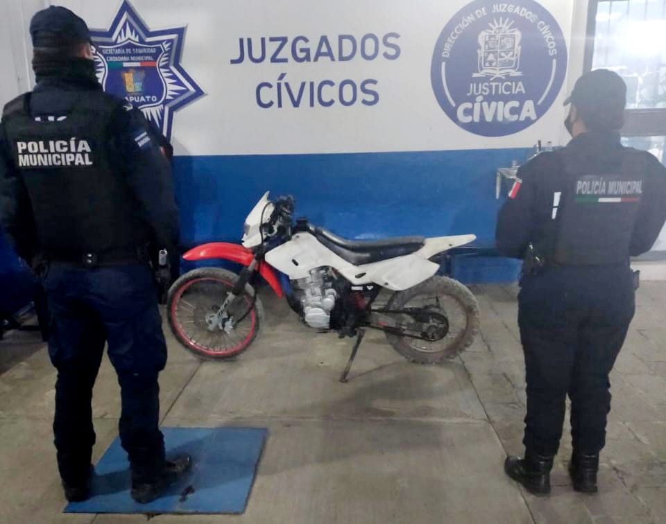Dos minutos después, a las 02:25 horas, en la calle Paraíso de la misma comunidad, sobre la vía pública, los policías recuperaron una motocicleta de la marca Italika 125 DM, modelo 2018, color blanco, que resultó con reporte de robo.