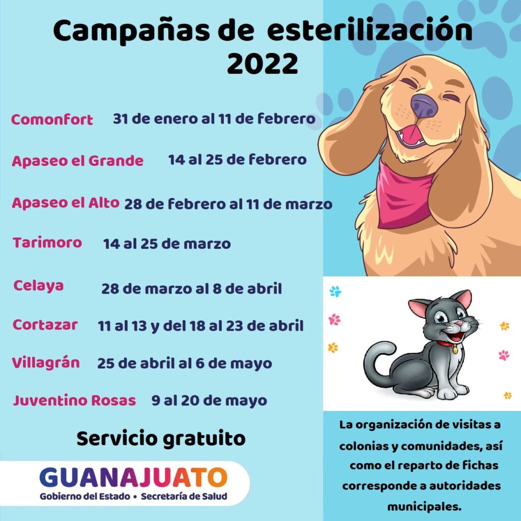 Celaya, Guanajuato, 7 marzo 2022. La Secretaría de Salud de Guanajuato dio a conocer las fechas programadas para llevar a cabo las campañas de esterilización canina y felina en los municipios que pertenecen a la Jurisdicción Sanitaria III.