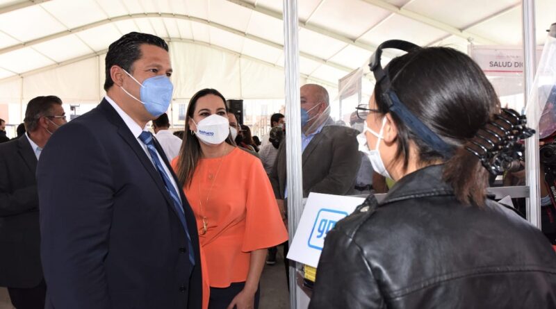 Irapuato, Gto. 22 marzo 2022. Un total de 70 empresas de los sectores automotriz, de comercio, agroalimentario y de la industria metalmecánica, estuvieron presentes en el evento de Enlace Laboral 2022, que se llevó a cabo en la plazuela Miguel Hidalgo.