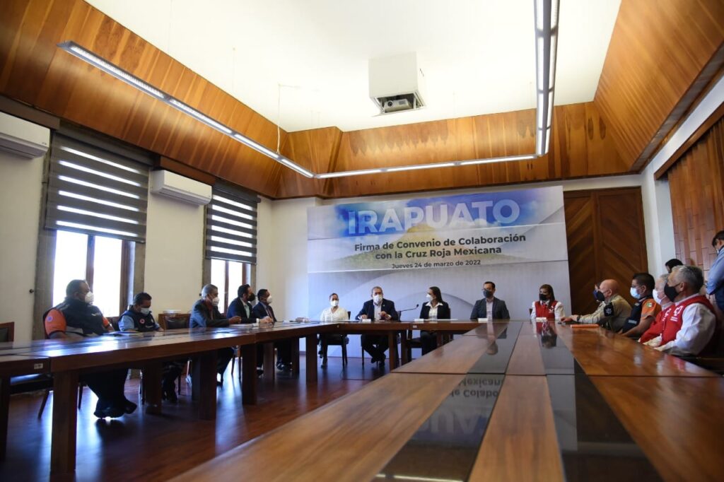 Irapuato, Gto. 24 marzo 2022. Para contribuir al desarrollo y operatividad pre-hospitalaria en la atención médica, en urgencias y durante desastres a la ciudadanía, el Gobierno Municipal firmó un convenio de colaboración con autoridades de la Cruz Roja Mexicana.