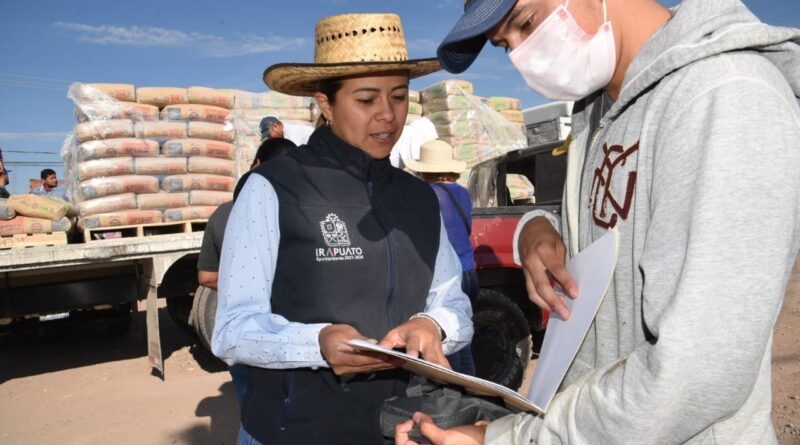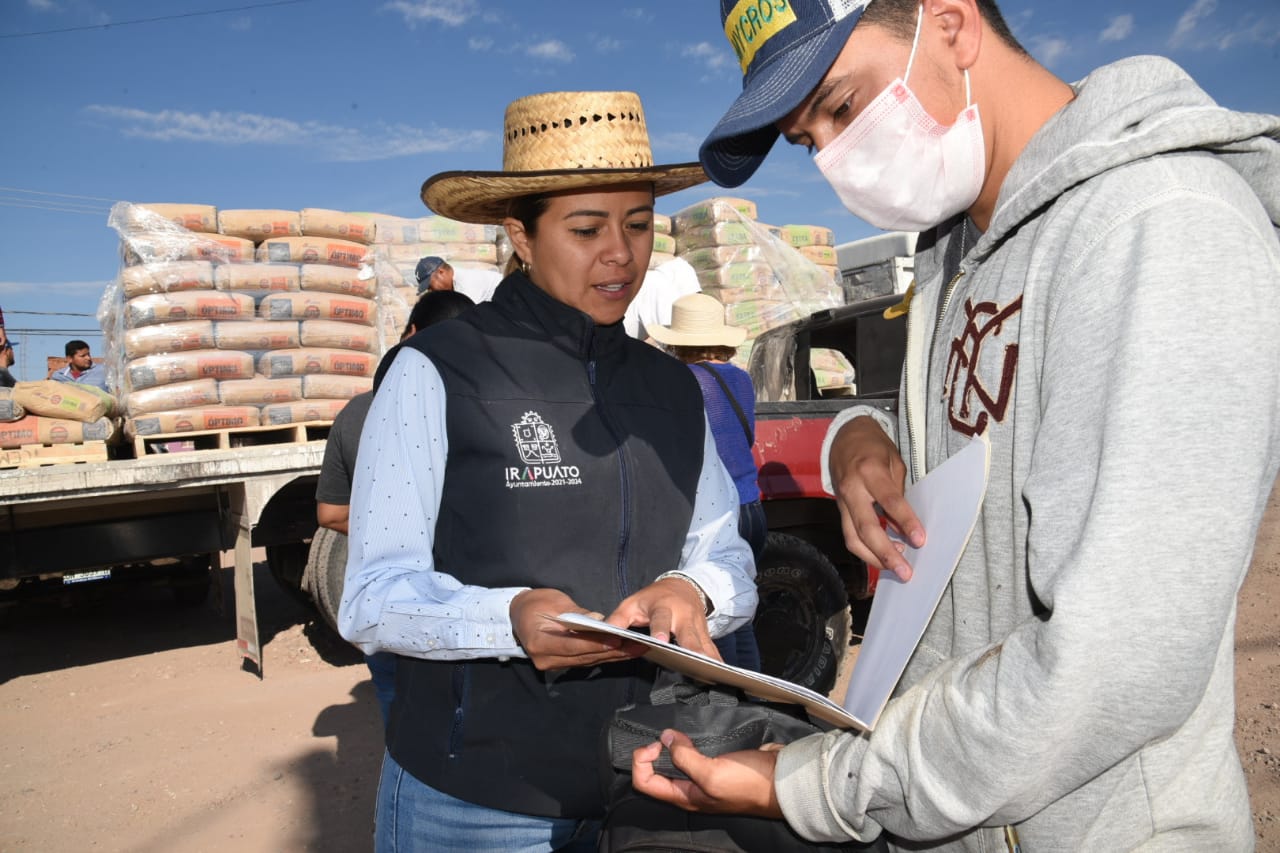 Irapuato, Gto. 15 abril 2022. Para que nadie se quede atrás y contribuir a la economía familiar y mejorar las viviendas de las y los irapuatenses de colonias y comunidades rurales, la Dirección de Desarrollo Social y Humano, entregó cemento y mortero como parte del programa de subsidios que realiza a través de la Congregación Mariana Trinitaria.