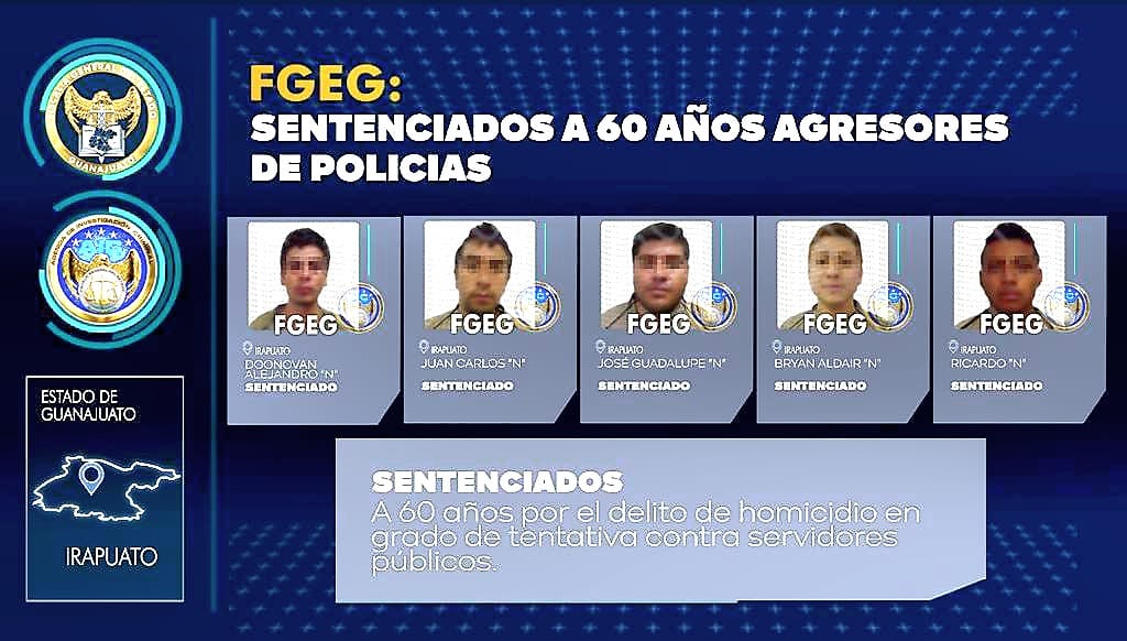 Condenan a 5 Hombres a 50 años de prisión por disparar a oficiales de policía en Irapuato