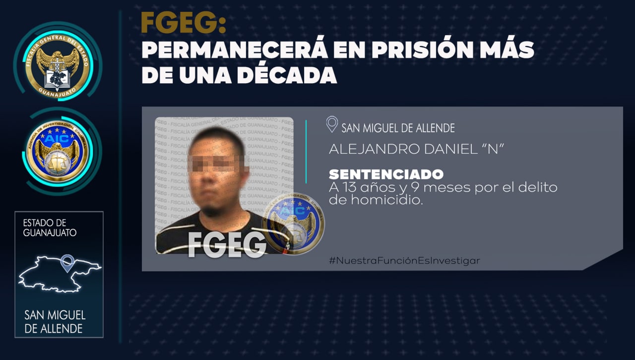 ️La FGE obtuvo que el Juez de Control le dictara sentencia condenatoria por el delito de homicidio, cometido en San Miguel de Allende