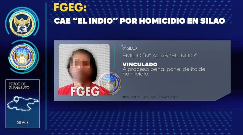 Silao, Gto. 11 junio 2022. Un hombre murió baleado afuera de su domicilio en la comunidad de San Marcos, la investigación para el esclarecimiento del crimen llevó a la detención de una persona identificada como EMILIO “N”, también conocido como “El Indio”, quien ya fue vinculado a proceso penal como autor material de los hechos criminales.