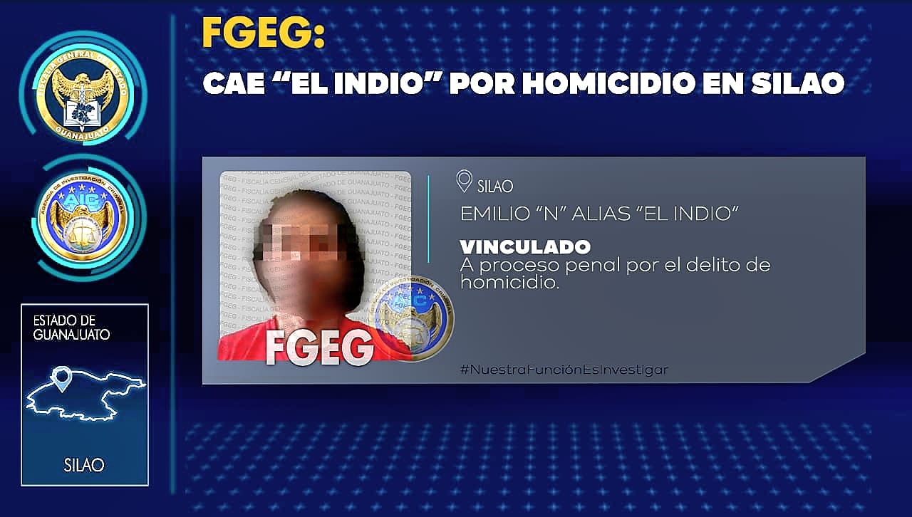 El trabajo de inteligencia en campo y gabinete por parte de la Agencia de Investigación Criminal se mantuvo hasta concretar la detención de EMILIO “N”, alias “El Indio”, por quien se giró una orden de aprehensión a fin de que compareciera ante la justicia.
