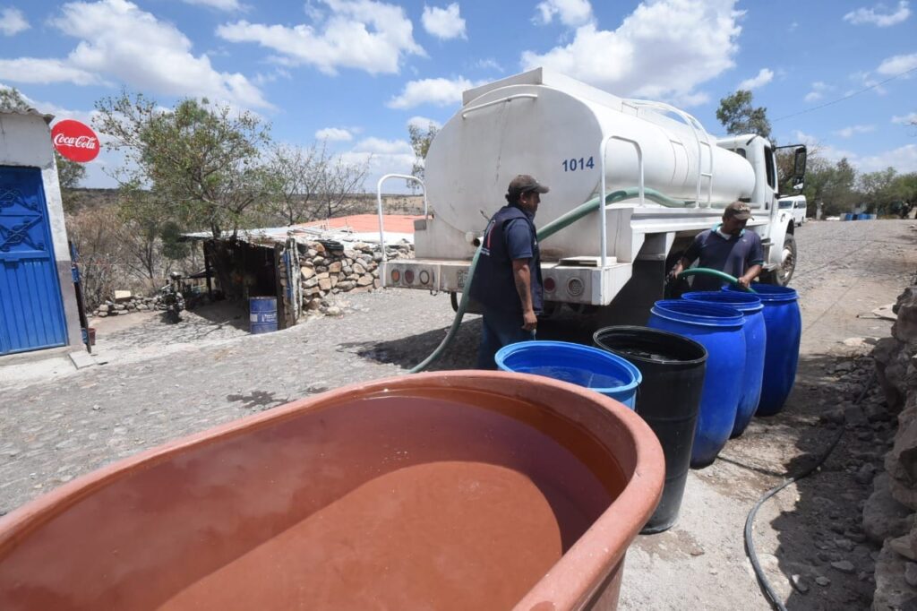 En esta localidad, la presidenta municipal Lorena Alfaro García, entregó 16 tinacos que, previo a la temporada de lluvias, servirán para que las y los habitantes de la zona puedan captar el agua de la lluvia y almacenarla para su uso. Además de este programa, también se ha acercado leche subsidiada y, a través de Desarrollo Rural, cada semana se les apoya con agua potable.