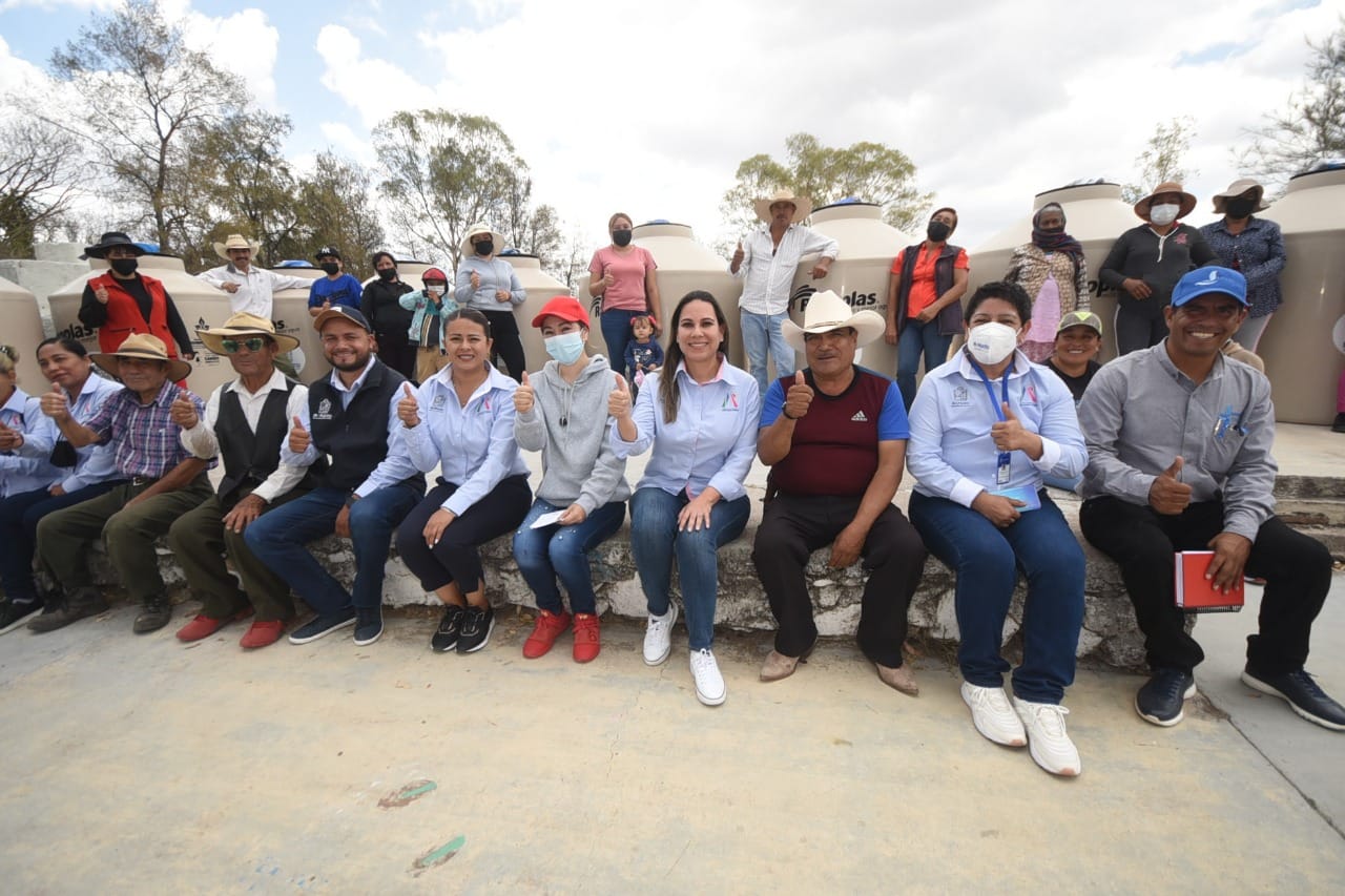 En esta localidad, la presidenta municipal Lorena Alfaro García, entregó 16 tinacos que, previo a la temporada de lluvias, servirán para que las y los habitantes de la zona puedan captar el agua de la lluvia y almacenarla para su uso. Además de este programa, también se ha acercado leche subsidiada y, a través de Desarrollo Rural, cada semana se les apoya con agua potable.