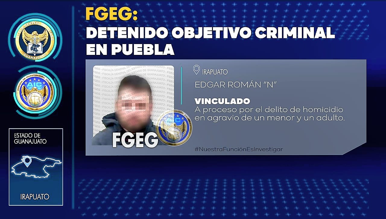 ️El hombre de 27 años disparó contra un menor de 14 años y un adulto, a quienes asesinó en mayo de 2021, en Irapuato.