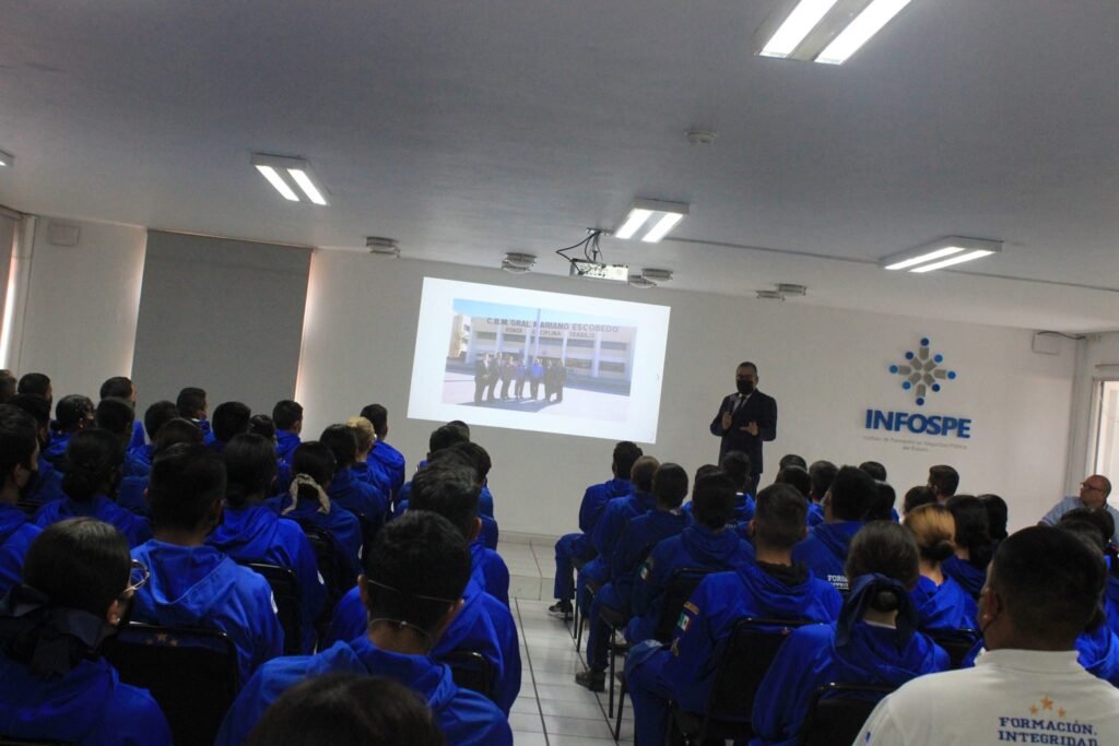 Por su parte Miguel Ángel Duran Torres, Comisario de las Fuerzas de Seguridad Pública del Estado, al participar en la sesión de información dio a conocer a los estudiantes de bachillerato, la historia del batallón Primer Ligero, que dio origen a las fuerzas estatales de seguridad y el marco legal que las rige.