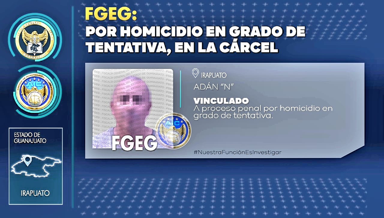 Irapuato, Gto. 4 julio 2022. La trilogía investigadora del delito, logró acreditar el delito de homicidio en grado de tentativa y obtuvo autorización judicial para realizar una investigación formal en contra de ADÁN “N”. El imputado confrontó a un vecino y es responsable de causarle lesiones de las que tardan más de 15 días en sanar y ponen en peligro la vida.El acierto del Ministerio Público fue interpretar correctamente los hechos, reconstruir lo ocurrido y comprender lo que sucedió, de ahí lo relevante de la fiabilidad y preservación de la integridad física de los vestigios que fueron admitidos por un tribunal, para obtener una orden de aprehensión y detener al presunto implicado.Al reanudarse la audiencia por control de detención, el acusado tuvo comunicación con el Ministerio Público, en presencia del Juez de Control, por lo cual tuvo conocimiento que la representación social desarrolla una investigación en su contra, respecto de su probable intervención en un hecho que la ley señala como delito.El Juez resolvió que ADÁN “N” debe quedar en prisión preventiva oficiosa como medida cautelar, por todo el tiempo que dure el proceso, mientras la Fiscalía General de Justicia realiza una investigación complementaria en su contra.El pasado 14 de junio del presente año, aproximadamente a las 10:00 horas, el ofendido llegó al domicilio de su hermano a visitarlo, a bordo de una motocicleta. En la calle Juan Gutiérrez de la colonia Tercera Sección de Las Heras, se encontraba el imputado, molesto, recogía una manguera de la calle y, en la imaginaria, lanzaba insultos a diestra y siniestra, exigiendo que lo respetaran.En ese momento, se dio el contacto visual con Jorge Luis “N”, y lo retó a golpes, a lo cual el ofendido aceptó y le dijo que sería entre ellos. Y ambos optaron por “pedir apoyo”, el ofendido a sus familiares porque conocía que ADÁN “N” acostumbra portar arma y suele acompañarse de pandilleros.El agresor llamó a “un camarada” y le dijo – “Vente amigo, vamos a chingarnos a este cabrón de una vez, agarra la pistola y las balas que tengo ahí, donde ya sabes”-En ese momento, salieron familiares de la víctima para “apoyar” y Jorge Luis se hace de un machete que estaba en la casa de su familiar. Otro familiar abogó por una pelea entre los rijosos a “mano limpia”. En eso estaban, cuando llegó al lugar un sujeto tatuado de la cabeza y cara, con sudadera gris, quien mostró una pistola que traía fajada en la cintura, y el ofendido nunca pensó que le fuera a disparar, por la gente que ya se había reunido en el sitio.La orden del imputado al agresor se escuchó por todos: “¡Dispárale de una vez, mátalo, qué esperas…!”El agresor sacó un arma de fuego tipo escuadra, se acercó al agraviado y le apuntó al abdomen a la víctima, disparando en una ocasión; intentó hacerlo nuevamente, pero la pistola se encasquilló y una bala cayó al piso. Acto seguido el tipo mete la pistola a la cintura y se da a la fuga, mientras que ADÁN se mete rápido a su domicilio.El traslado de inmediato del lesionado a recibir atención médica evitó que perdiera la vida. La lesión que le provocó el disparo le causó pérdida hemática súbita y abundante, casi el 40 por ciento del volumen corporal total, pero sobrevivió al atentado.