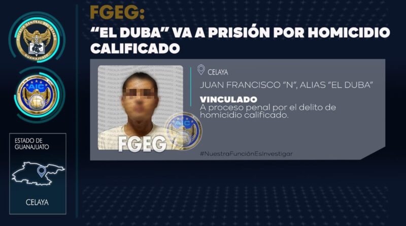 Lo anterior fue integrado a la carpeta de investigación como datos de prueba esenciales para lograr acreditar ante un Juez la probable participación de “El Duba”, quien fue vinculado a proceso penal en un tribunal por el delito de homicidio calificado.