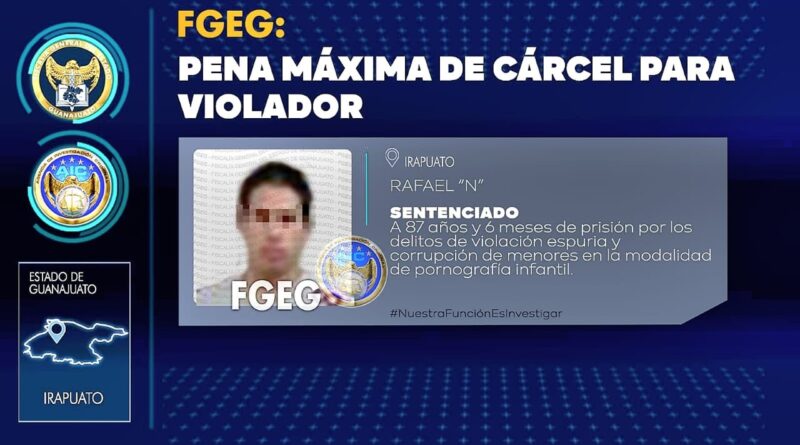 Irapuato, Gto. 25 agosto 2022. Una Fiscal del Centro Estatal de Justicia para las Mujeres de la Fiscalía General, obtuvo en juicio oral una sentencia de 87 años y 6 meses de cárcel para un hombre que violó a una víctima menor de edad y le solicitaba fotografías de carácter sexual, en la ciudad de Irapuato.