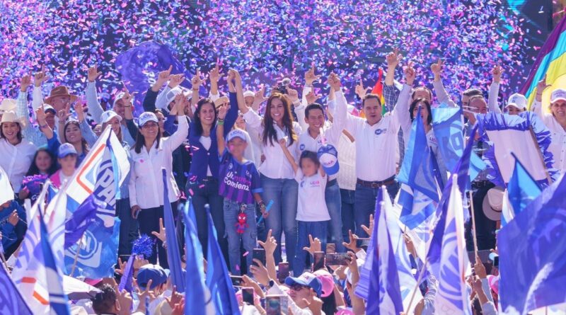 La militancia tomó esta emblemática plaza para hacer retumbar con entusiasmo su apoyo a Libia. Con un ambiente festivo precedido de música y baile, dio lugar a las porras y vítores para Libia… “Gobernadora, gobernadora, gobernadora”, fue el grito que sonó potente entre el vaivén de banderolas blanquiazules.