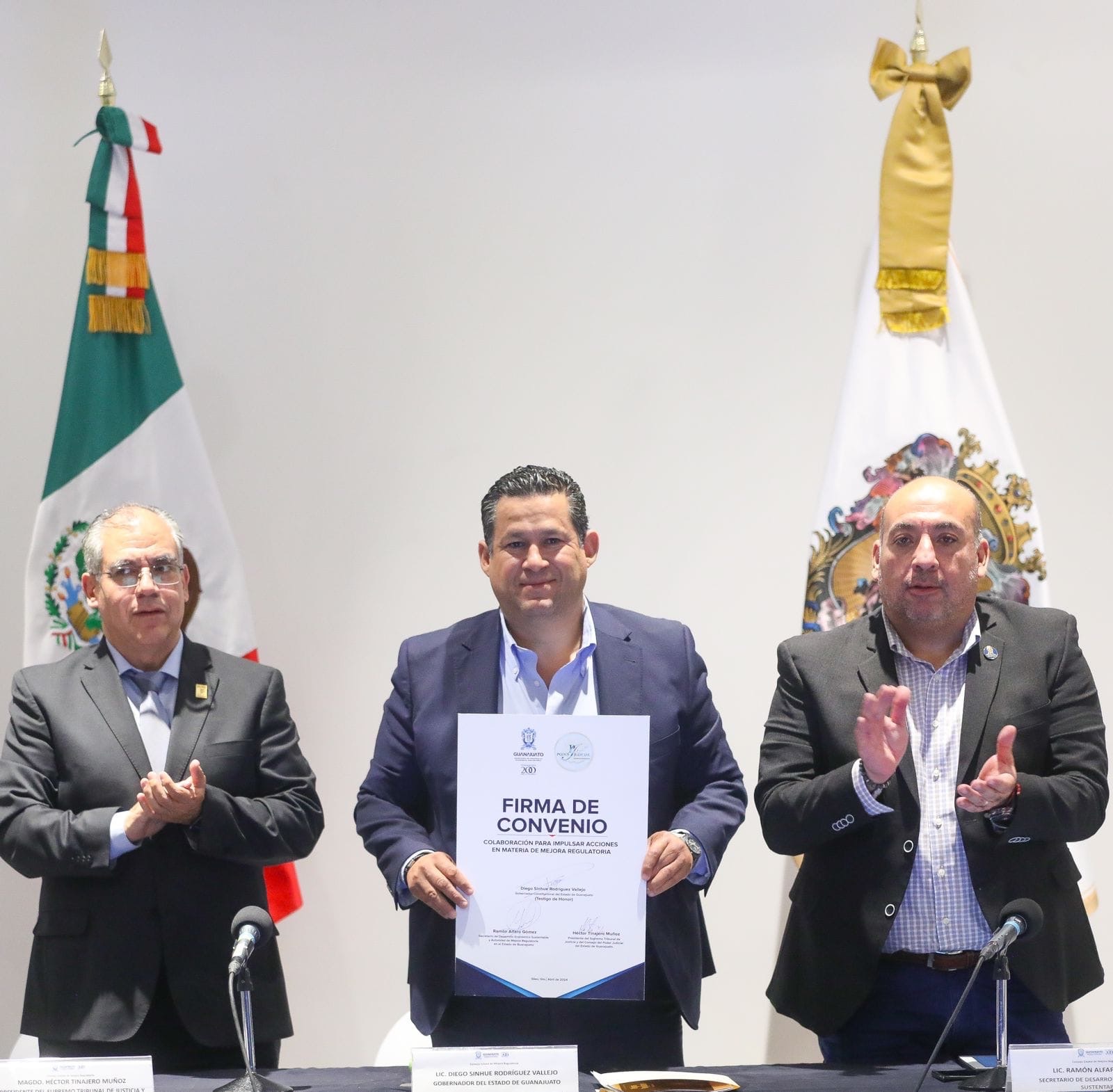 En esta Sesión estuvieron también presentes, el Secretario de Desarrollo Económico Sustentable, Ramón Alfaro Gómez; el Presidente del Supremo Tribunal de Justicia y del Consejo del Poder Judicial del Estado de Guanajuato; Héctor Tinajero Muñoz.
