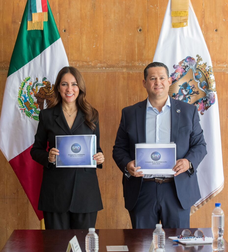 León, Gto. 15 agosto 2024. El Gobernador del Estado, Diego Sinhue Rodríguez Vallejo, y la Gobernadora Electa, Libia Dennise García Muñoz Ledo, iniciaron el proceso de entrega recepción de la Administración Estatal de Guanajuato, con la instalación de la Mesa de Transición. La Integración del Comité de Transición marca el comienzo del proceso Entrega – Recepción, que tiene como objetivo garantizar el buen funcionamiento de la Administración Pública Estatal y brindar certeza jurídica al proceso de transición del Poder Ejecutivo. En esta reunión se abordaron proyectos estratégicos del Gobierno Estatal, áreas de oportunidad y recursos financieros, entre otros temas.