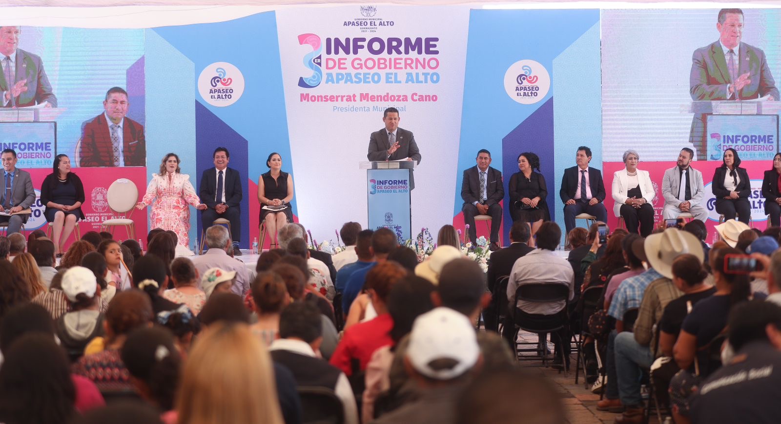 El Gobernador asistió como Invitado de Honor al Tercer Informe de Gobierno del periodo 2021-2024, que ofreció la Presidenta Municipal, Guadalupe Monserrat Mendoza Cano, y mencionó la sinergia entre Estado y Municipio para lograr más obras y acciones.