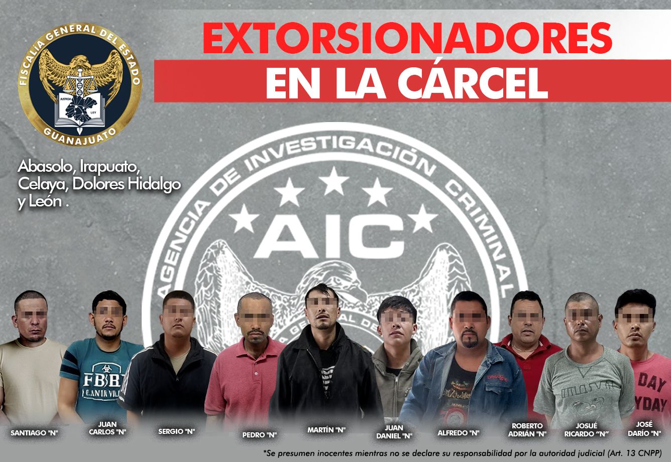 Guanajuato, Gto. 20 octubre 2024. La Fiscalía de Guanajuato a través de la Fiscalía Especializada en Investigación de Delitos de Alto Impacto, logró que un grupo de extorsionadores fueran vinculados a proceso penal y sentenciados por el delito de extorsión en agravio de diversos comerciantes en los municipios de Abasolo, Irapuato, Celaya, Dolores Hidalgo y León.