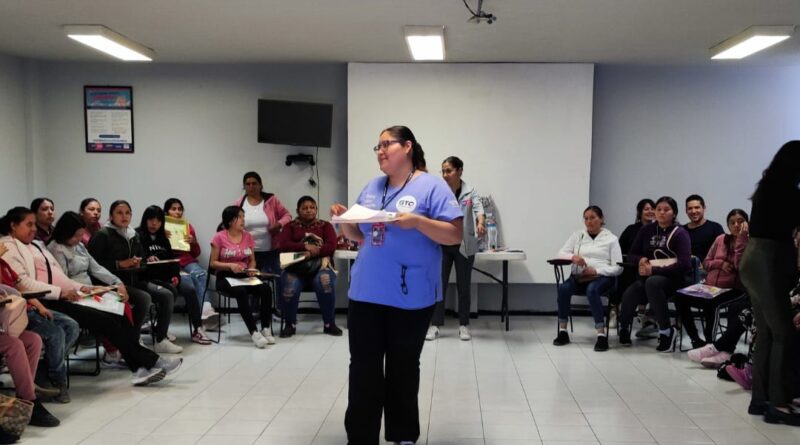 María Concepción Álvarez del programa de desarrollo infantil dio el taller enfocado en la “estimulación prenatal o intrauterina”, para que las y los asistentes adquieran técnicas y habilidades que beneficie a los bebés, incluso antes de su nacimiento, como son la estimulación motora, visual, sensorial y auditiva.