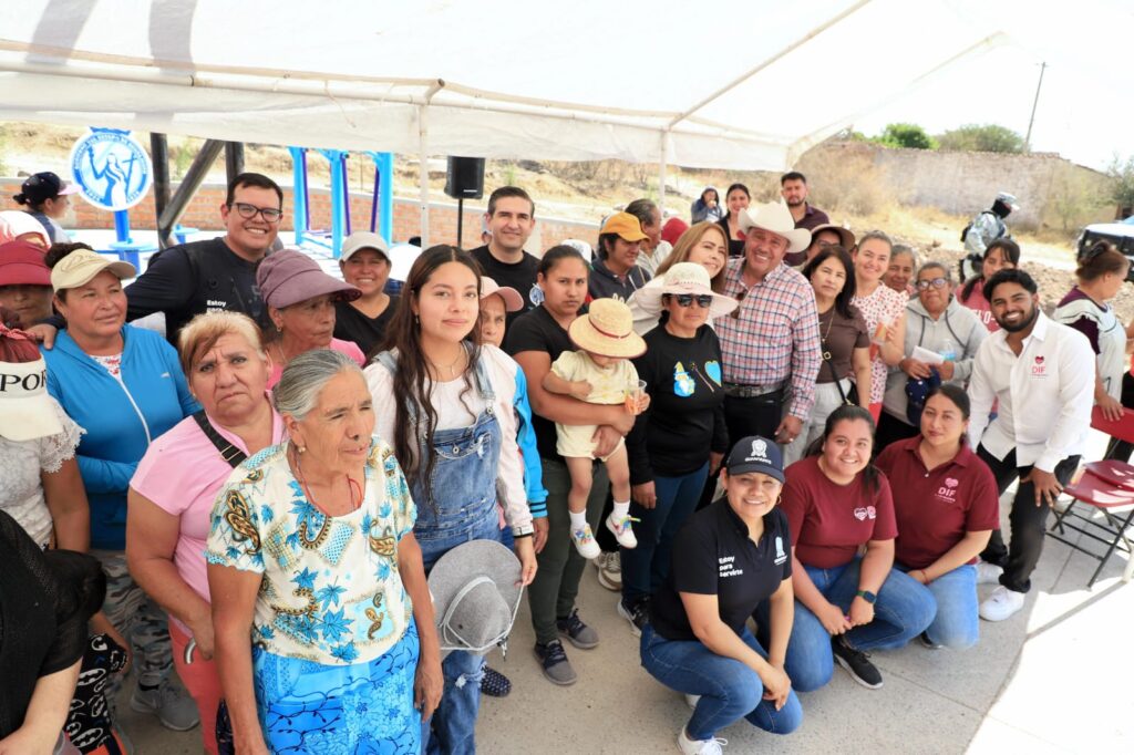 Tarimoro, Gto. 27 abril 2025. El Gobierno de la Gente a través del Sistema para el Desarrollo Integral de la Familia (DIF), entregó ejercitadores y juegos infantiles para el rescate de espacio público en la comunidad “El Aguacate”, como parte del programa de Red Móvil: Salud y Bienestar Comunitario.