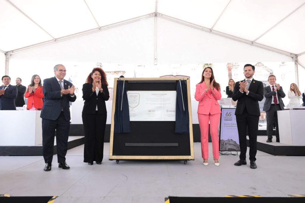 En el marco de esta Sesión Solemne, la Gobernadora develó una placa conmemorativa, acompañada de Miriam Reyes Carmona, Presidenta del Congreso del Estado de Guanajuato; Héctor Tinajero Muñoz, Presidente del Supremo Tribunal de Justicia del Estado de Guanajuato; y José Luis Oliveros Usabiaga, Presidente Municipal de Apaseo el Grande; teniendo como testigos a las y los diputados de la Sexagésima Sexta Legislatura del Congreso del Estado.