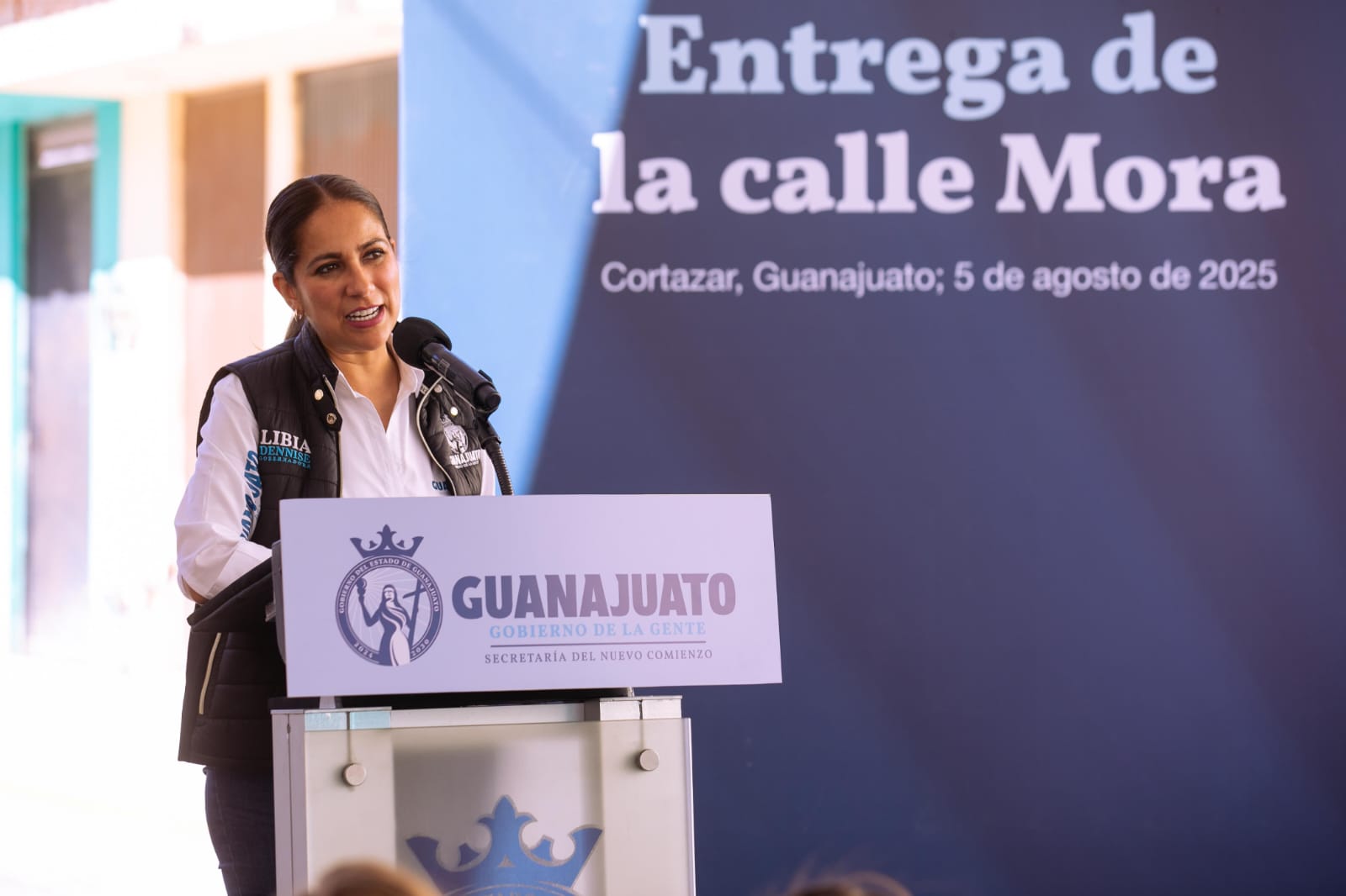 La Gobernadora guanajuatense entregó la pavimentación de la Calle Mora, en la Colonia Cerrito Colorado, del municipio de Cortazar.