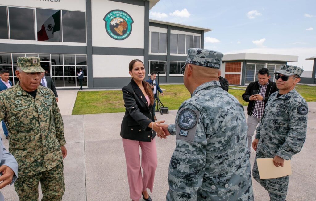 “Me siento verdaderamente muy honrada de poder participar en la inauguración de las instalaciones de este Batallón de la Guardia Nacional. Es una magnífica oportunidad para reiterarles nuestro reconocimiento a la tarea conjunta de construir la paz y la seguridad de Guanajuato”, expresó la Mandataria Estatal.