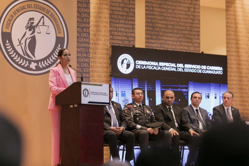 Previamente, la Gobernadora de la Gente asistió como invitada especial a la Ceremonia Especial del Servicio de Carrera de la Fiscalía General del Estado de Guanajuato (FGE).