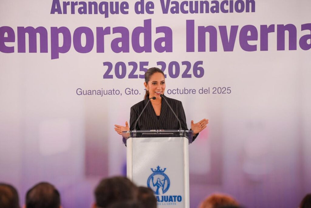 Guanajuato, Gto. 17 octubre 2025. La Gobernadora de la Gente, Libia Dennise García Muñoz Ledo, dio arranque a la jornada de vacunación de la temporada invernal 2025-2026.