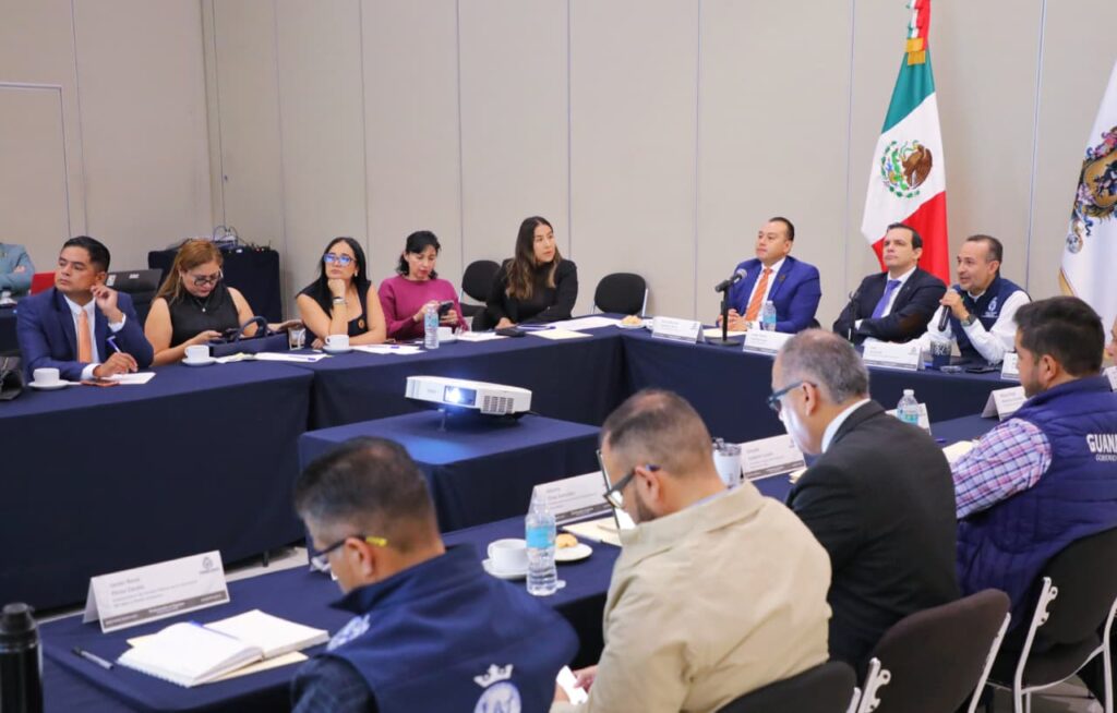 En representación de la Gobernadora de la Gente, Libia Dennise García Muñoz Ledo, el Secretario de Gobierno, Jorge Daniel Jiménez Lona, recibió a los ediles de Cortazar, Villagrán, Silao e Irapuato, para mostrarles, a detalle, los proyectos del Acueducto Solís, de la tecnificación del agua y del saneamiento del Río Lerma.