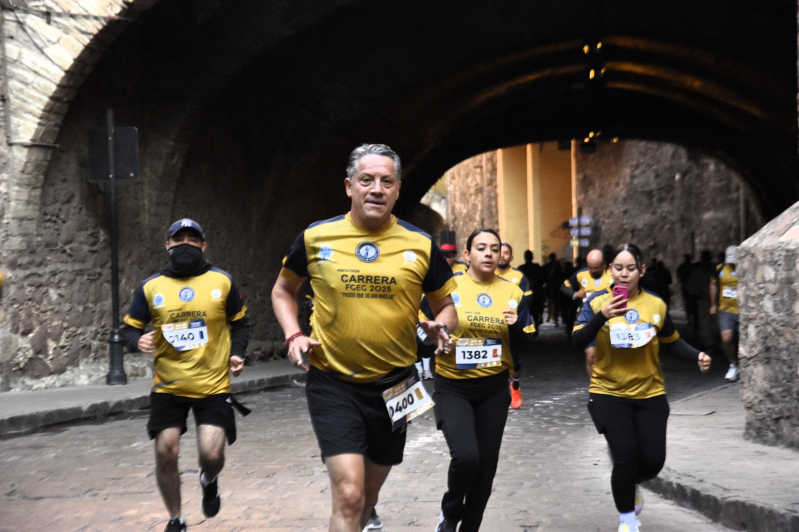 El Grupo Especial de Reacción e Intervención (GERI) de la Fiscalía dio el banderazo de salida, encabezando el recorrido con un grupo táctico al frente que simbolizó disciplina, fortaleza y trabajo en equipo. A su paso, las calles y túneles históricos de Guanajuato capital se llenaron de participantes grandes y pequeños, llenos de energía, decididos a llegar a la meta juntos.