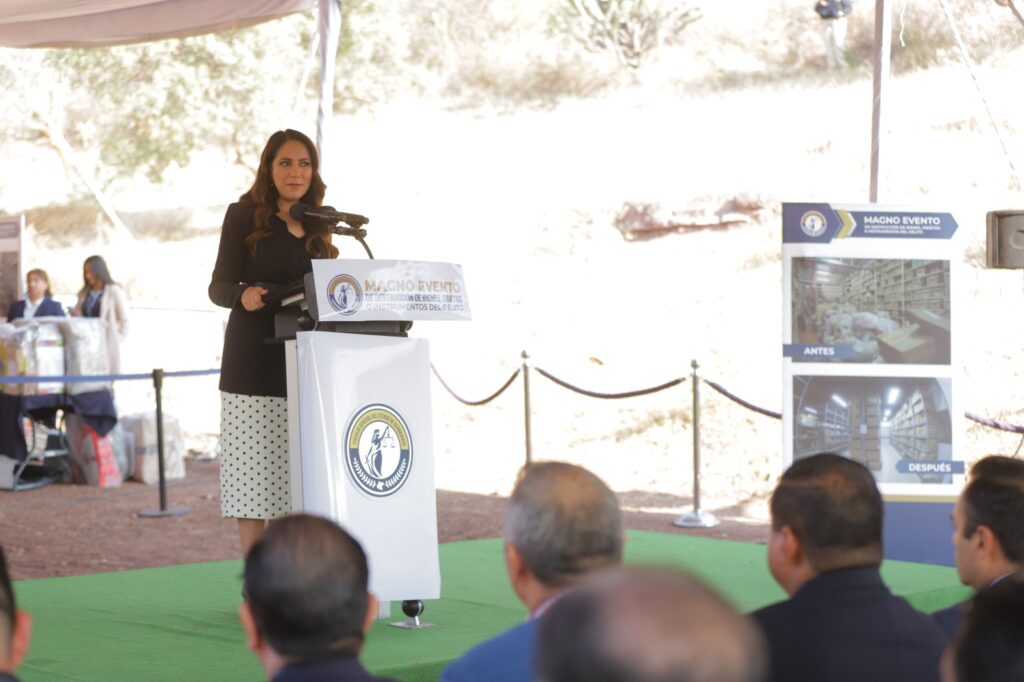 Hoy Guanajuato avanza con firmeza hacia procesos de procuración de justicia más ordenados, seguros y transparentes. En un evento sin precedentes celebrado por la Fiscalía General del Estado de Guanajuato, se llevó a cabo la destrucción de cientos de miles de bienes e instrumentos del delito que ya agotaron su función jurídica.