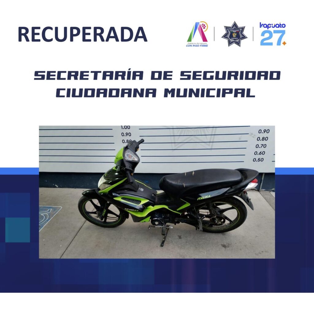 Irapuato, Gto. 14 diciembre 2025. Como resultado de las acciones de prevención y vigilancia que implementa la Secretaría de Seguridad Ciudadana Municipal (SSCM) en los distintos sectores del municipio, elementos de la Policía Municipal recuperaron dos camionetas y una motocicleta con reporte de robo, en hechos distintos.