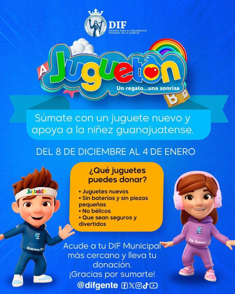 ️El DIF Estatal Guanajuato convoca a la ciudadanía a donar juguetes nuevos antes del 4 de enero y contribuir a que miles de niñas y niños vivan la magia del Día de Reyes