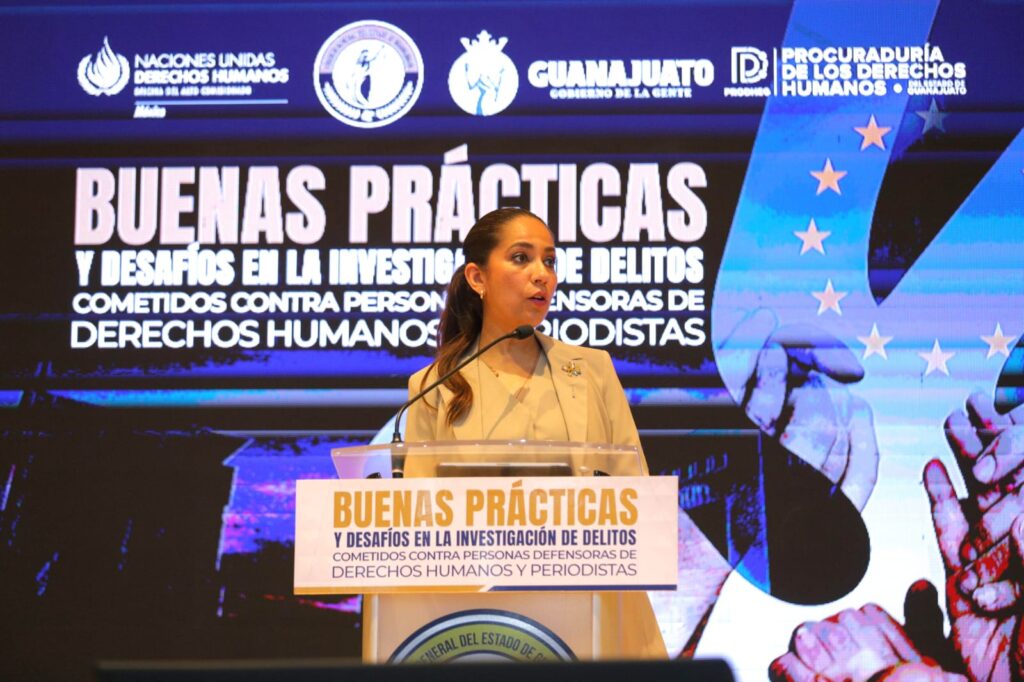 El evento contó con la honorable presencia de Jaime Fernández Rua, en representación del Embajador de la Unión Europea en México, quien subrayó que Guanajuato es un ejemplo de cooperación internacional basada en la confianza y el respeto mutuo, al señalar que “la protección de las personas defensoras de derechos humanos y de los periodistas es uno de los ámbitos donde mejor se demuestra el compromiso real con los derechos humanos, más allá de los discursos”. Destacó además que el informe presentado sistematiza buenas prácticas fundamentales en la investigación de estos delitos y reconoció que su impacto solo es posible “gracias al compromiso y al trabajo de las autoridades, como la Fiscalía General del Estado de Guanajuato, que han asumido con seriedad la responsabilidad de combatir la impunidad y fortalecer la justicia”.